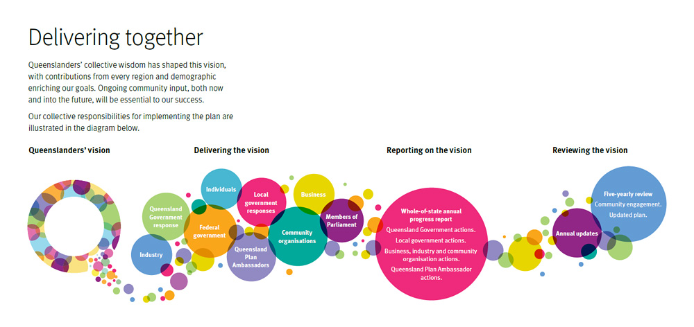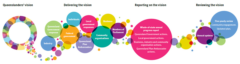 All Queenslanders—governments, business, industry, community groups, individuals and The Queensland Plan Ambassadors—are encouraged to think of ways to achieve the vision and put these into practice.